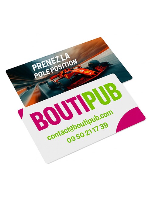 - Formats : 85 × 54 mm (standard carte bancaire) ou 128 × 82 mm (grand format).