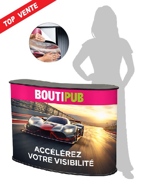 Comptoir publicitaire courbe DOIRAS, pratique et rapide à monter,