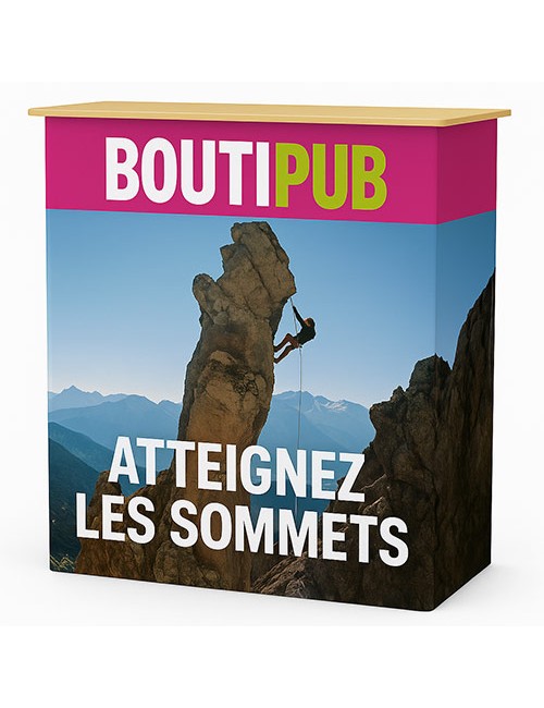 Nos comptoirs publicitaires combinent praticité, élégance et visibilité. Que vous optiez pour un comptoir textile tendu personnalisé ou un comptoir parapluie léger et résistant, vous disposerez d’un mobilier design et efficace pour vos stands d’exposition, salons et foires commerciales.