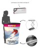 Une fois replié, le comptoir se range dans un sac de transport en nylon doté d’une mousse de protection, de poignées renforcées et d’une sangle épaule. Cette configuration facilite les déplacements fréquents et protège le matériel lors du transport.