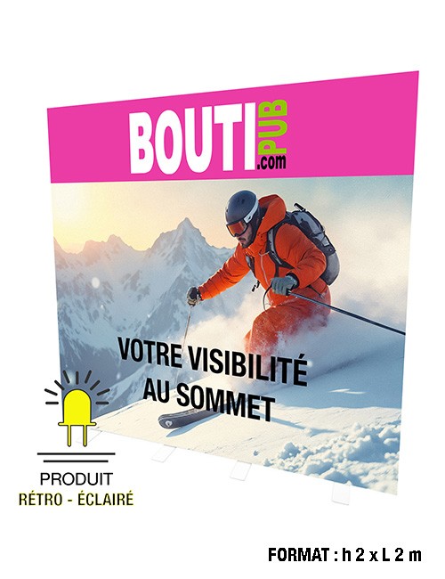 Les visuels sont imprimés sur textile backlight diffusant, conçu pour un rendu lumineux homogène et professionnel.
