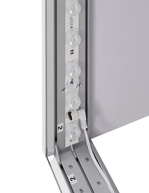 Le visuel backlight est entièrement interchangeable. Grâce au système de jonc cousu, vous changez rapidement votre message sans racheter la structure. Une solution idéale pour enchaîner plusieurs salons ou adapter votre communication à chaque saison.