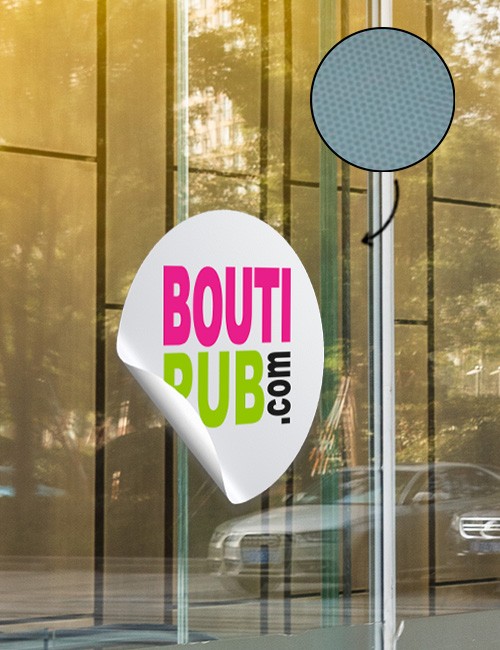 Impression sur adhésif micro-ventouses. Ce film sans colle se pose facilement, se repositionne à volonté et s’enlève sans laisser de traces. Idéal pour les promotions temporaires, vitrines, opérations commerciales ou décorations saisonnières.