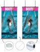Le kakémono est composé de deux barres en aluminium : une barre supérieure permettant la suspension et une barre inférieure servant de lestage pour maintenir le visuel parfaitement tendu. Le système de fixation par clips permet de remplacer rapidement le visuel sans changer la structure.