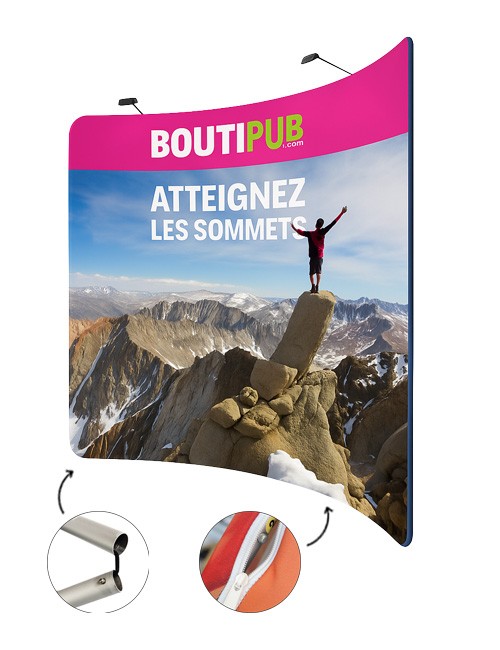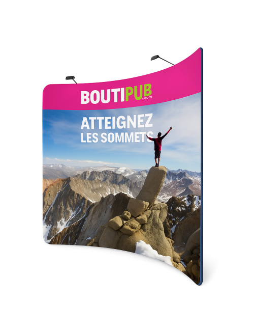 Le Formulate Courbe est bien plus qu’un simple mur d’images publicitaire : il incarne l’innovation et l’élégance dans vos stands d’exposition, salons professionnels et événements. Sa structure en aluminium léger de 30 mm assure un montage sans outils, simple et rapide, pour un rendu haut de gamme.