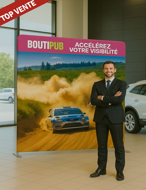 Best-seller de la gamme : visuel textile HD, hauteur ajustable et montage express