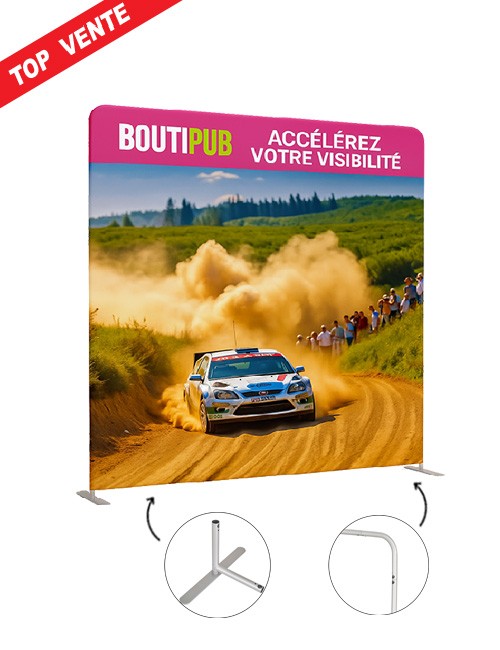 Visuel interchangeable : changez de housse textile sans remplacer la structure. Idéal pour les campagnes saisonnières ou l’utilisation multi-événement.
